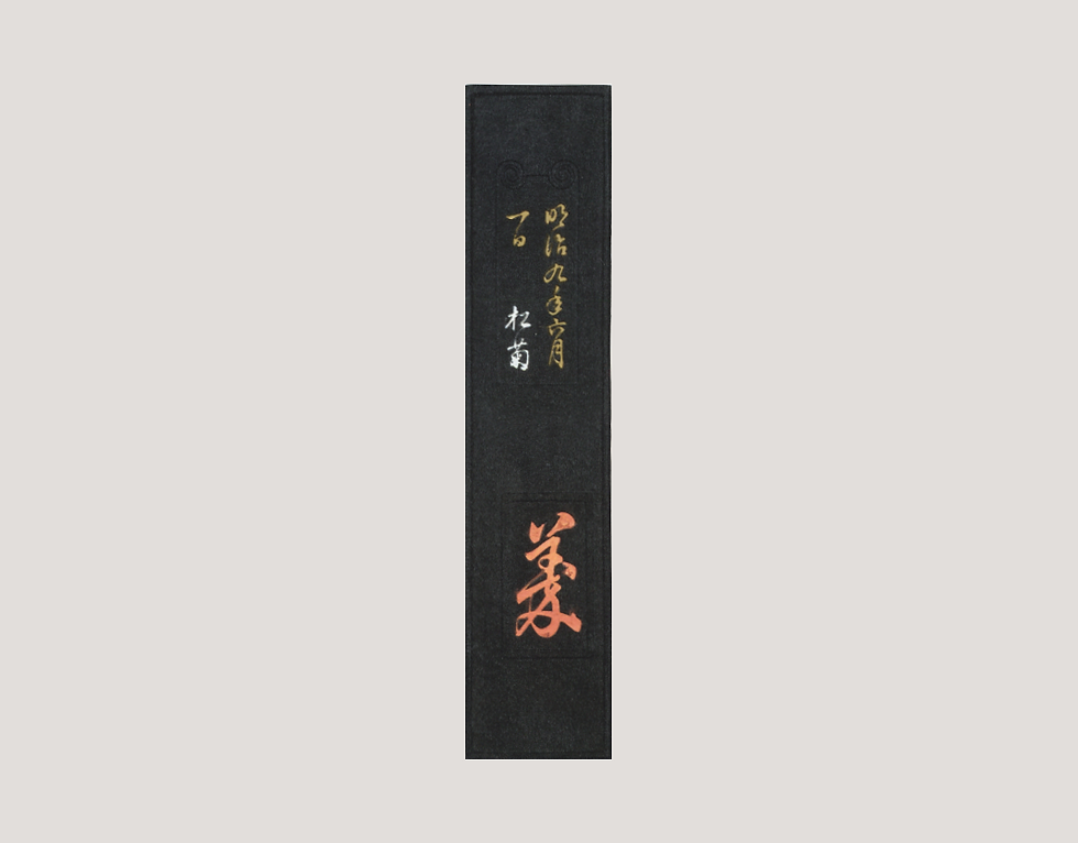 鉱物性油煙墨です。その中でも煤の粒子の細かさによってランク分けされており、上からⅠ・Ⅱ・Ⅲとなっています。粒子が細かいと磨墨液の伸びがよくなります。墨色は黒味の強い純黒色で、淡墨にすると茶色味かかった墨色になります。漢字作品には最適です。